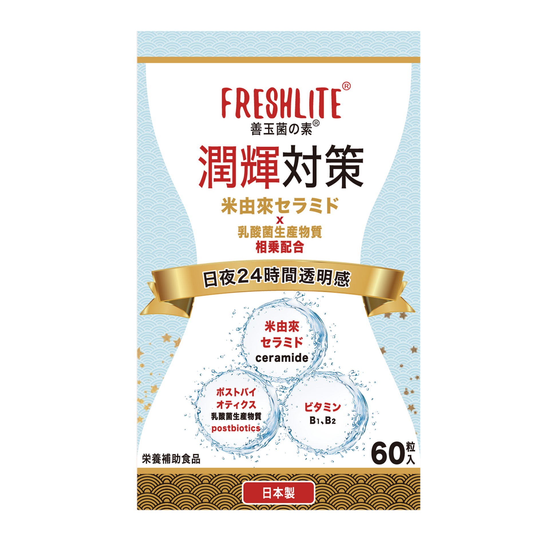 潤輝対策|高濃度90%国産米由來セラミド + 高純度の天然ポストバイオティクス+天然由來ビタミンB1、B2|60粒入
