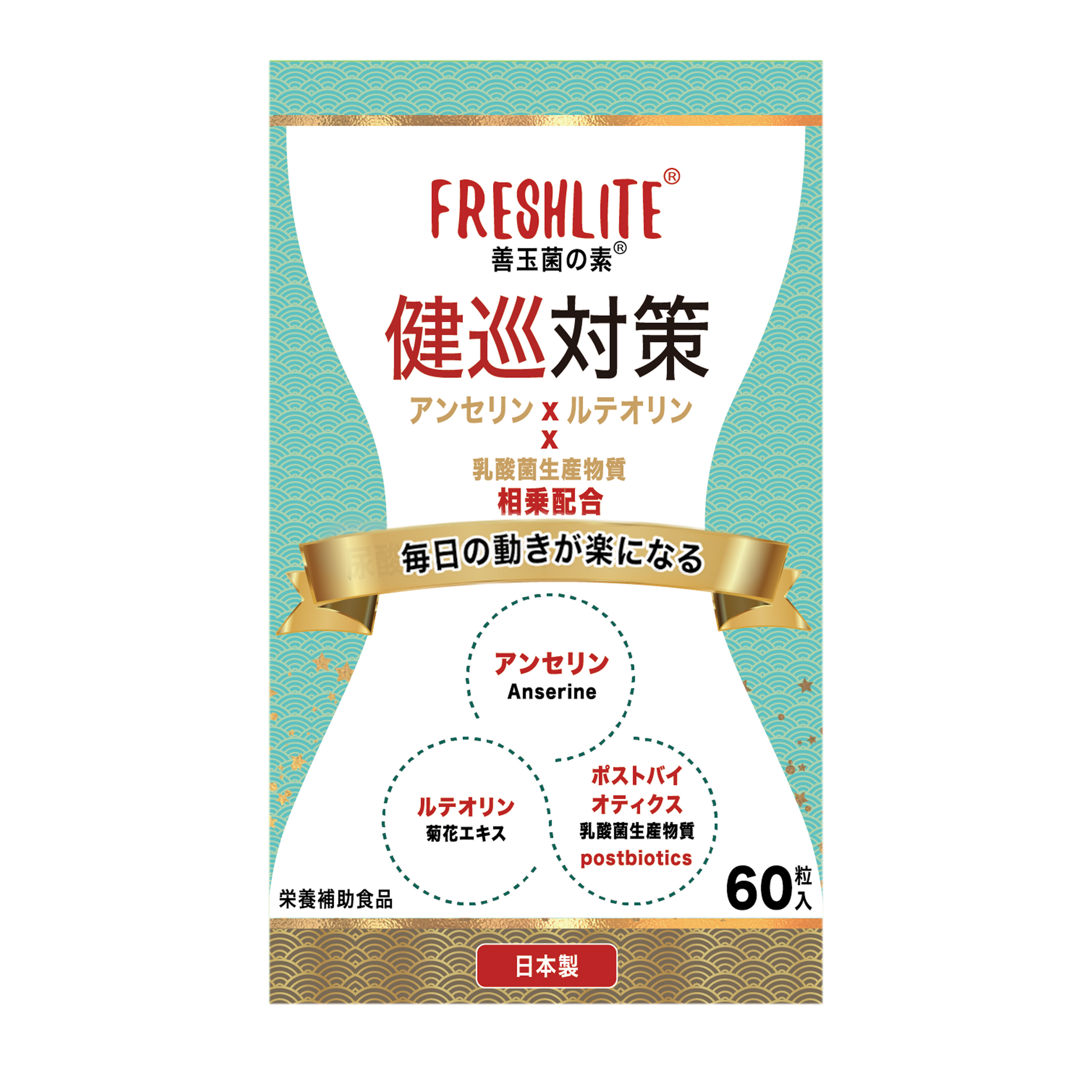 健巡対策|特許取得アンセリン+菊の花由来ルテオリン+天然発酵ポストバイオティクス|60粒入